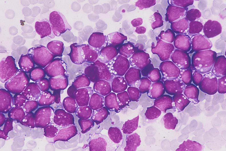 光顕的所見 芽球は単一様式から腫瘍性を考える。それらは顕著な空胞が特徴的である。