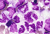 末梢血所見 白血球が著増(63,420/μl)のもと、芽球(1%)を含む幼若顆粒球(11%)と単球の増加(10,147/μl)がみられた。また、赤芽球を13/100wも認め、白赤芽球症がみられた。