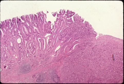 于边缘部伴有IIc型进展的IIa+IIc型早期胃癌