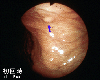 病歴十二指腸潰瘍で経過観察中の上部消化管検査で、胃体部に1.1cm大の粘膜下腫瘍(SMT)を発見された。3年3カ月後、この腫瘍が約2.5倍増大し、隆起の背も高くなったため、入院となった。